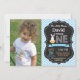 Invitación de primer cumpleaños conyugal con foto de personalizado. Muchacho conejito. Invitación al Día del Huevo de Pascua. Conejo. Huevos. Fondo Chalkboard Azul Chevron. 1a 2a 3a 4a 6a 7a 8a 9a 10a 11a 12a 13a 14a 15a, Cualquier Edad. Digital Imprimible.