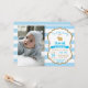 Invitación de primer cumpleaños conyugal con foto de personalizado. Muchacho conejito. Invitación al Día del Huevo de Pascua. Conejo. Huevos. Purpurina Azul y Oro. Fondo de las franjas azules. 1a 2a 3a 4a 6a 7a 8a 9a 10a 11a 12a 13a 14a 15a, Cualquier Edad. Digital Imprimible.