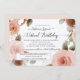 "Invitación a la fiesta de cumpleaños de la floral floral virtual de Rubor". Esta invitación puede ayudar a los miembros de su familia a unirse a la celebración y navegar el proceso maravillosamente. Paleta bohemiana silenciosa, color de la tierra con una elegante acuarela de color pálido floral. rosas rosas Rubor rosas, flores de albaricoque y melocotón, aliento de bebé blanco con eucalipto de sabio y follaje rosa de hojas de oliva y vegetación templada forman una corona. Creada y diseñada por la artista con licencia internacional Audrey Jeanne Roberts. Copyright.