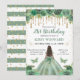 Invitación Nacimiento de las princesas de oro y verde acuarel