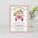 Magnífico safari de selva color rosa y verde de agua tierno animales y diseño vegetal tropical exuberante con globos rosados y aferrado a un fondo de patrón de chevron rosa