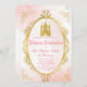 Plantilla de invitación de cumpleaños de princesa de marco ovalado rosa y dorado. Castillo de princesa dorada de fondo rosado, colores cálidos adorables para una niña.