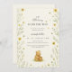Añada un toque dulce y acogedor a la celebración de su bebé con este adorable fondo de invitación al oso miel. Con un suave ilustracion acuático de un oso bebé sosteniendo una olla de miel, rodeado de flores silvestres amarillas y abejas zumbantes. Este diseño suave y neutro es ideal para duchas de bebé, invitaciones para el primer cumpleaños, posters de hitos de bebé o decoración de vivero. Una elección perfecta para la primavera o para los niños inspirados en la naturaleza. Ideal para uso digital o imprimible.
