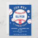 Invitación a la fiesta de cumpleaños de Blue Baseball Ball. Haga un recorrido en casa con esta invitación personalizada de cumpleaños de béisbol - ¡perfecto para su pequeño día grande del MVP! Diseño divertido con temas de béisbol con detalles de puntos rojos. Personalizado con el nombre y la edad de su hijo. Ideal para niños o chicas que aman los deportes. Personalizable de texto para detalles del fiesta e información de RSVP. Coincide con la decoración de los fiestas de béisbol y favorece la colección.