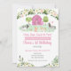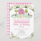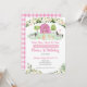 Esta encantadora invitación de cumpleaños incluye animales de granja acuáticas con acentos florales rosas, confeti y un borde de gingham rosa.
