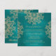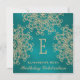 Un hermoso verde azulado pavo azul turquesa azul turquesa JEWEL TONED y oro cualquier edad invitaciones de fiesta de cumpleaños con un exótico estilo de medallón ornamental inspirado indio con un diseño de loto y floral. Esta elegante y elegante invitación de cumpleaños de estilo étnico es perfecta para una fiesta festiva de 3° 40°, 50° o 60 años, con un ALADDIN indonesio marroquí ARABIAN NIGHTS o un tema asiático oriental. Se puede personalizar y monogramar con el chica de cumpleaños monograma, carta o inicial y personalizado para decir lo que quiera en la parte posterior de la invitación. Diseño © Chrissy H. Estudios, LLC.Todos Los Derechos Reservados.