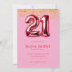 Invitación moderna de 21 años con 21 globos fiestas de forma con tipografía minimalista de color rosa y rojo.