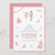 Invitación de cumpleaños rosado a Navidades de Nutcracker y Ballerina