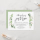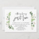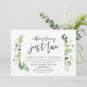 Tarjeta de invitación de boda íntima con tema de jardín de verano con hojas verdes y letra script negra moderna (Nada de Fantasía, Solo Amor). Es perfecta para su recepción de boda íntima / celebración posterior a la boda. Agregue sus detalles en fuente / letra negra coincidente.