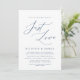 Esta es la tarjeta de anuncio/ invitación de boda Nada Elegante, Solo Amor, en fuente Azul Marino. Perfecta para invitar a su familia y amigos a celebrar esta importante celebración.