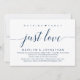 Hermosa tarjeta de anuncio de boda clandestina con tema azul marino, elegante y sofisticada (Nada elegante, solo amor). Esto es perfecto para su recepción de boda y cena y baile después de la boda clandestina.