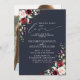 Crea la invitación perfecta para una boda casual, o celebración de recepción después de escaparse, con este diseño moderno y trendy, con flores de acuarela en rojo burgundy y blush, con tipografía de letra a mano, sobre un fondo azul marino. El diseño incluye tu foto favorita en la parte posterior de la tarjeta. Contacta al diseñador para obtener productos a juego. ¡Muchas gracias por apoyar nuestro pequeño negocio, lo apreciamos mucho!