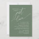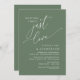 Anuncia y comparte tu felicidad para siempre con estilo con nuestra tarjeta de invitación de celebración de boda con diseño de tema verde de sabio forestal moderno (Nothing Fancy Just Love). Es ideal para parejas que han decidido celebrar su mejor día. Con su diseño sofisticado y juguetón, esta invitación seguramente establecerá el tono para un evento inolvidable. La tarjeta de invitación presenta un tema de diseño de escritura moderno y minimalista, agregando un toque de elegancia atemporal a tu celebración. Diseñado por TeeshaDerrick