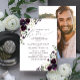 Crea la invitación perfecta para una boda casual, o celebración de recepción después de una fuga, con este diseño moderno y trendy de flores de acuarela en color ciruela, que presenta tipografía de letra manuscrita. La parte trasera de la tarjeta presenta tu foto de compromiso favorita. Contacta al diseñador para obtener productos coincidentes. ¡Muchas gracias por apoyar nuestro pequeño negocio, lo apreciamos mucho!