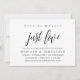 Anuncia tu felicidad eterna con estilo con nuestra tarjeta de invitación para el brunch después de la boda (Nada elegante, solo amor) con diseño de letra moderna (tema negro y blanco). Nuestra tarjeta de invitación para la celebración del brunch Felicidad Eterna es ideal para parejas que han decidido fugarse y desean organizar una fiesta para celebrar su unión. Con su diseño sofisticado pero juguetón, esta invitación seguramente establecerá el tono para un evento inolvidable. La tarjeta de invitación presenta un diseño minimalista, agregando un toque de elegancia atemporal a tu celebración. Diseñado por TeeshaDerrick