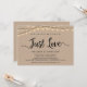 Hermoso anuncio de elopamiento / tarjeta de invitación Nada Elegante, Solo Amor, Boda, con diseño rústico de granja kraft y luces de cadena. Es perfecto para su recepción de boda y fiesta de celebración después de la boda. Agregue sus detalles en la fuente / letra coincidente.