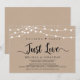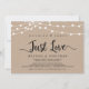 Hermoso anuncio de elopamiento / tarjeta de invitación Nada Elegante, Solo Amor, Boda, con diseño rústico de granja kraft y luces de cadena. Es perfecto para su recepción de boda y fiesta de celebración post-boda. Agregue sus detalles en fuente / letra coincidente.