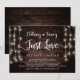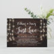 Hermoso anuncio de elopamiento de boda Nada Elegante, Solo Amor, Tarjeta de invitación, en madera rústica de granja, diseño de luces de cadena. Esto es perfecto para la recepción de su boda y la fiesta de celebración después de la boda. Agregue sus datos en la fuente / letra coincidente.