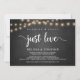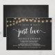 Hermoso Anuncio de Elopamiento de Boda Nada Elegante, Solo Amor, Tarjeta de invitación, en pizarra de granja rústica, diseño de Luces de Cadena. Esto es perfecto para la recepción de su boda y la fiesta de celebración después de la boda. Agregue sus detalles en la fuente / letra coincidente.