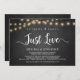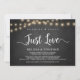 Hermoso anuncio de elopamiento de boda Nada Elegante, Solo Amor, tarjeta de invitación, en pizarra de granja rústica, diseño de luces de cuerda. Esto es perfecto para la recepción de su boda y la fiesta de celebración después de la boda. Agregue sus detalles en la fuente / letra coincidente. #TeeshaDerrick