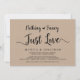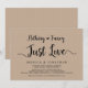 Hermoso Sin lujos, solo amor, Anuncio de fuga de novios / Tarjeta de invitación, en diseño rústico moderno, Kraft marrón. Esto es perfecto para la recepción de su boda y la fiesta de celebración después de la boda. Agregue sus datos en la fuente / letra coincidente.