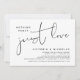 Esta es la tarjeta de invitación para la fiesta de fuga de novios, con un diseño minimalista de letra en negro (Nada elegante, solo amor).