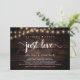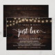 Hermoso Nada Elegante, Solo Amor, Tarjeta de Anuncio de Boda / Invitación, en Madera de Granja Rústica, diseño de Luces de Cuerda. Esto es perfecto para la recepción de su boda y la fiesta de celebración después de la boda. Agregue sus detalles en la fuente / letra coincidente.