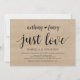 Hermoso Nada Elegante, Solo Amor, Tarjeta de anuncio de fuga de boda / Invitación a la fiesta, en diseño rústico moderno, con tema de fondo de madera. Esto es perfecto para la recepción de su boda y la fiesta de celebración después de la boda. Agregue sus datos en la fuente / letra coincidente. #TeeshaDerrick