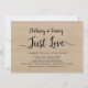 tarjeta de invitacióninvitación después de la bodanos fugamoscelebración después de la bodaanuncio de fuga de noviosmadera marrón rústica de granjacelebración de aniversario de bodasinvitación a cenarnada elegante