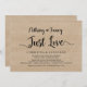 Hermoso Nada Elegante, Solo Amor, Anuncio de Fuga de Novios / Tarjeta de invitación, con diseño de madera rústica de granja. Esto es perfecto para la recepción de su boda y la fiesta de celebración después de la boda. Agregue sus detalles en fuente / letra coincidente. #TeeshaDerrick