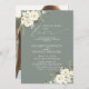 Crea la invitación perfecta para una boda casual, o celebración de recepción después de escaparse, con este diseño moderno y trendy, con flores de acuarela de eucalipto y blanco, tipografía de letra manuscrita, sobre un fondo verde salvia. El diseño incluye tu foto favorita en la parte posterior de la tarjeta. Contacta con el diseñador para obtener productos a juego. ¡Muchas gracias por apoyar nuestro pequeño negocio, lo apreciamos mucho!