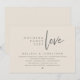 Anuncie y comparta su gusto por el estilo con nuestra moderna tarjeta de invitación a la celebración de la fiesta de boda en color gris crema (Nothing Fancy Just Love). Es ideal para las parejas que han decidido celebrar su mejor día. Con un diseño sofisticado pero lúdico, esta invitación seguramente marcará el tono para un evento inolvidable. La tarjeta de invitación incluye un diseño de escritura moderno y minimalista, añadiendo un toque de elegancia eterna a tu celebración. Diseñado por TeeshaDerrick