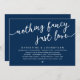 Anuncie su feliz siempre después con estilo (Nothing Fancy, Just Love) con nuestra moderna tarjeta de invitación a la celebración de la celebración del boda de diseño rústico azul marino. Nuestra tarjeta de invitación a la celebración de Fiestas es ideal para parejas que han decidido irse y quieren albergar a un fiesta para celebrar su unión. Con un diseño sofisticado pero lúdico, esta invitación seguramente marcará el tono para un evento inolvidable. La tarjeta de invitación incluye un minimalista diseño rústico y elegante, añadiendo un toque de elegancia eterna a su celebración. Diseñado por TeeshaDerrick