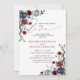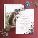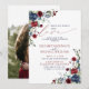 Crea la invitación perfecta para una boda casual, o celebración de recepción después de una fuga, con este diseño moderno y trendy de flores de acuarela en azul marino y rojo burgundy, que presenta tipografía de letra manuscrita. La parte trasera de la invitación presenta tu foto de compromiso favorita. Contacta al diseñador para obtener productos coincidentes. ¡Muchas gracias por apoyar nuestro pequeño negocio, lo apreciamos mucho!