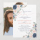 Crea la invitación perfecta para una boda casual, o celebración de recepción después de escaparse, con este moderno y trendy diseño de flores acuarelas en azul polvoriento y rosa suave, que presenta tipografía de letra a mano. El diseño incluye tu foto favorita en la parte posterior de la tarjeta. Contacta al diseñador para obtener productos coincidentes. ¡Muchas gracias por apoyar nuestro pequeño negocio, lo apreciamos mucho!