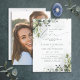 Crea la invitación perfecta para una boda casual o celebración de recepción después de una fuga, con este diseño moderno y trendy de vegetación botánica de eucalipto, que presenta tipografía de letra a mano, con todo el texto en verde salvia. La parte trasera de la invitación presenta tu foto favorita. ¡Muchas gracias por apoyar nuestro pequeño negocio, lo apreciamos mucho!