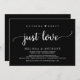 Hermoso, nada de fantasía, solo amor a la celebración fiesta, Boda Elopement Invitación / tarjeta de invitación, en un diseño rústico, simple, minimalista, con elegante temática negra. Esto es perfecto para tu recepción de bodas y fiesta de celebración post-boda.