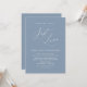 Anuncia elegantemente tu felicidad eterna con nuestra tarjeta de invitación de boda para una celebración íntima con un tema de dusty blue romántico y moderno, "Nada elegante, solo amor". Diseñada para parejas que continúan su historia de amor, esta invitación logra un equilibrio perfecto entre sofisticación y encanto, preparando el escenario para un evento inolvidable. Con un diseño de letra contemporáneo y moderno, añade un toque de gracia atemporal a tu día especial. Diseñada por la talentosa TeeshaDerrick, esta invitación es una expresión elegante de tu amor duradero.
