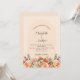 Para un boda elegante y romántico. Un fondo de color melocotón suave decorado con flores naranjas, melocotones y rosas. Marco en forma de arco. Personalice y agregue sus nombres y detalles. De vuelta: color melocotón.
