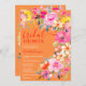 Invitación Naranja de acuarela floral bohemia con ducha de no