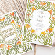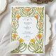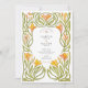 Retroceder en el tiempo con esta exquisitamente artística invitación a la boda, profundamente inspirada por la elegancia del movimiento Art Nouveau. Este diseño presenta un marco cautivador de lirios estilizados en una paleta cálida de melocotón naranja, amarillo y suave. El entrelazado de las vides verdes es intrincado y fluido, para crear un impresionante borde orgánico que captura perfectamente el espíritu vintage. Esta invitación es una elección ideal para una pareja sofisticada con amor por el arte y la historia, perfecta para un elegante boda de otoño o una celebración de jardín única. El panel central ofrece un escenario clásico para sus detalles de boda de personalizable, lo que promete una primera impresión inolvidable.