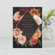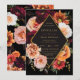 Personalice esta elegante invitación de boda fácil y rápidamente. Simplemente haga clic en el botón Editar usando herramientas de diseño para editar el texto, cambiar fuentes y colores de fuentes. Con hermosas peonías burdeos realistas, rosas de color negro, claveles de óxido naranja, flores de ranunculus y margarita contra un oscuro fondo negro morado. Elementos coincidentes disponibles en el almacén. c) Somerset Fine Paperie