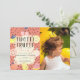 Esta encantadora invitación de 2º cumpleaños "tutti frutti or two-tti frutti" incluye tu foto y un fondo salmón/naranja/coral rosa con cerezas, limones, naranjas, manzanas, sandías y peras en colores pastel. En el reverso, el fondo es violeta con motivos frutales. Cambie el color de fondo y personalice sus necesidades. Puedes encontrar más productos a juego en mi tienda.