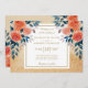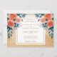 Este elegante diseño de invitación a la boda incluye flores naranjas acuáticas y follaje azul sobre un hermoso fondo crema que tiene la impresión de un falso purpurina dorado.