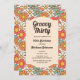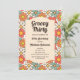 Flor verde, naranja, melocotón y rojo retro groovy patrón sin fisuras Invitación de cumpleaños. Este diseño divertido y vibrante es perfecto para todo aquel que desee añadir un toque de estilo retro a su día especial. Con sus colores llamativos y su estampado floral, esta invitación seguramente marcará el tono para una celebración memorable.