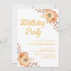 Invitación Naranja Flor Botánica Oro Blanco Cumpleaños