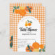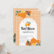 La invitación a la ducha de bebé con tema de cítricos naranjas es muy dulce. Divertido y moderno con naranjas acuáticos y gingham.