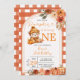 Naranja del oso lindo Pumpkin Gingham Invitación al primer cumpleaños Boho Nuestra calabaza pequeña está volviendo a un Naranja de cumpleaños Gingham Invitación