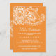 Esta tarjeta de invitación de Let's Celebrate con estampado de cachemira indio naranja es perfecta para un evento moderno. El diseño de mehndi presenta un hermoso mandala floral de henna y un motivo de cachemira sobre un fondo de naranja quemada. Esta invitación se puede personalizar para una fiesta de compromiso, despedida de soltera o cualquier evento o fiesta. Combina este diseño con las piezas coordinadas en púrpura, turquesa, rosa y naranja en la colección Colorful Indian Paisley Wedding: https://www.zazzle.com/collections/119662428781277925
