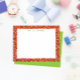 Un naranja, un borde de estampado de leopardo de las nieves y un moderno tipo sans serif hacen de este papel personalizado una opción no tradicional y divertida para cualquiera con una personalidad vibrante, amor al color y estilo salvaje.